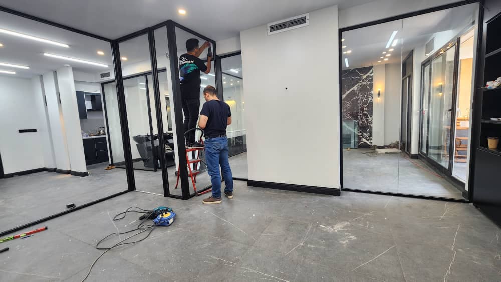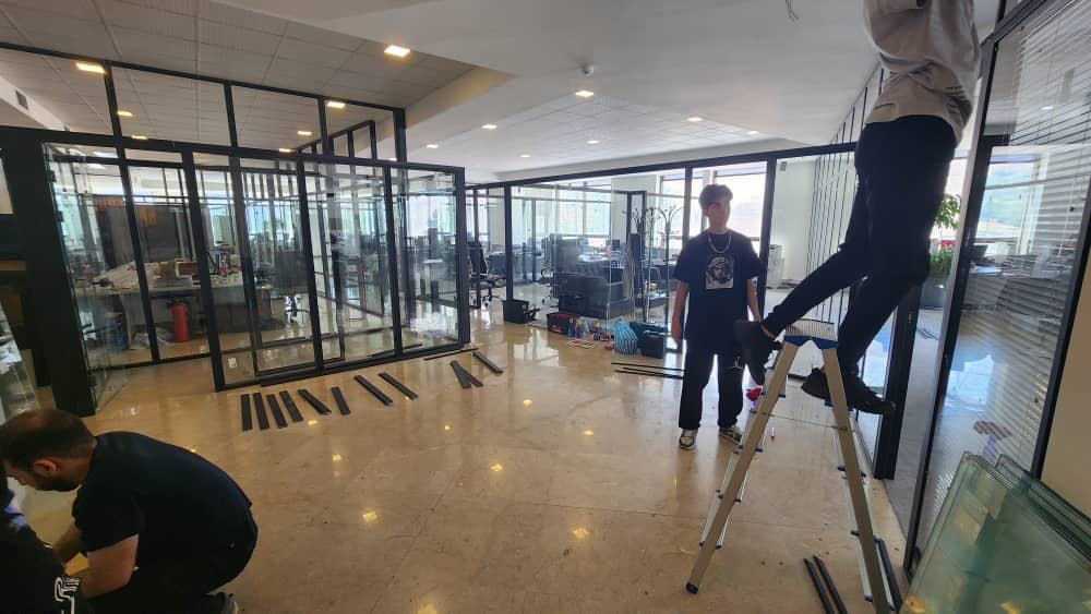 جابه جای یا نصب پارتیشن اداری چالش های خاص خودش را دارد. از ویژگی های پارتیشن شیشه ای فریم لس این است که هنگام نصب جای کمتری بر روی زمین اشغال می کنند.